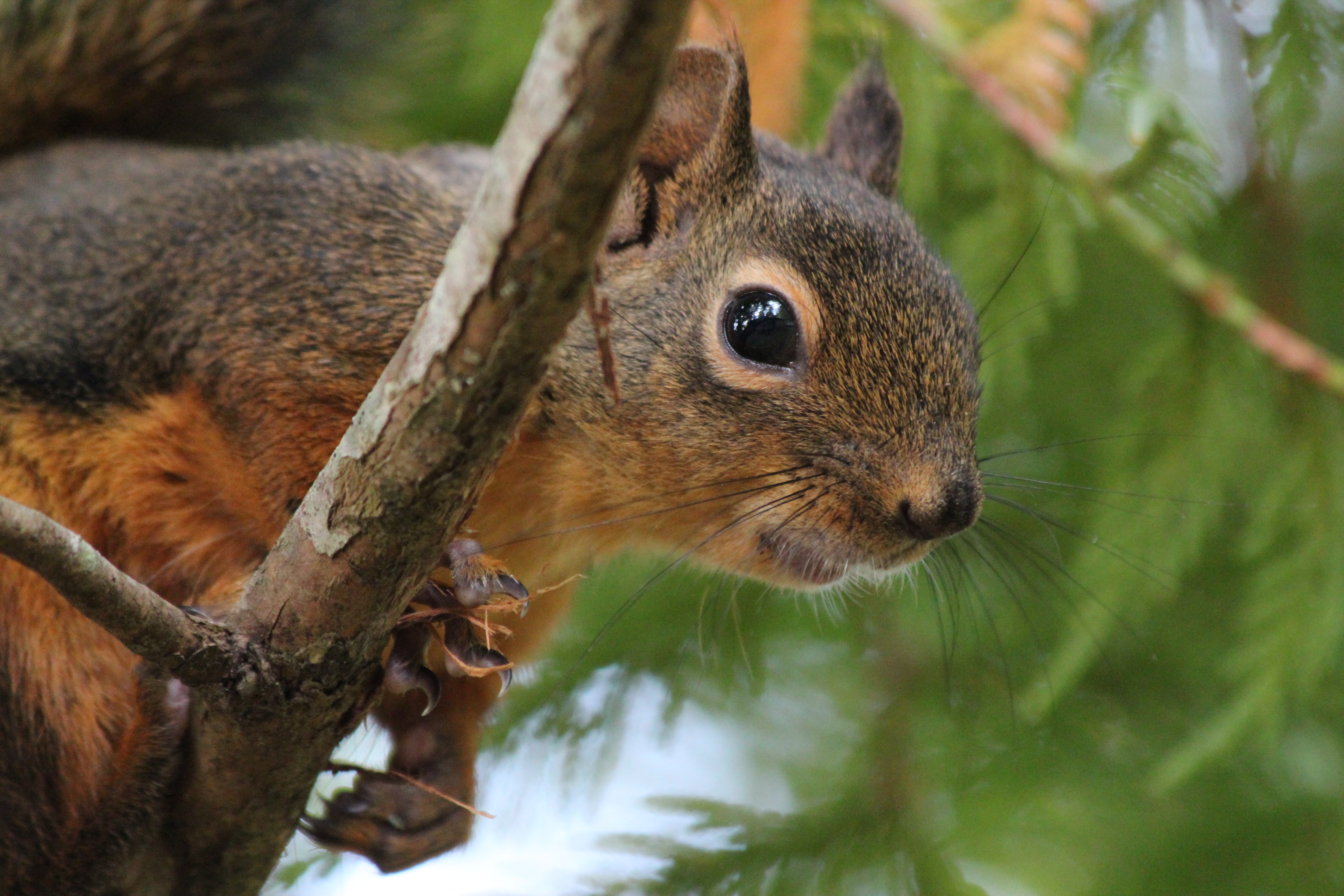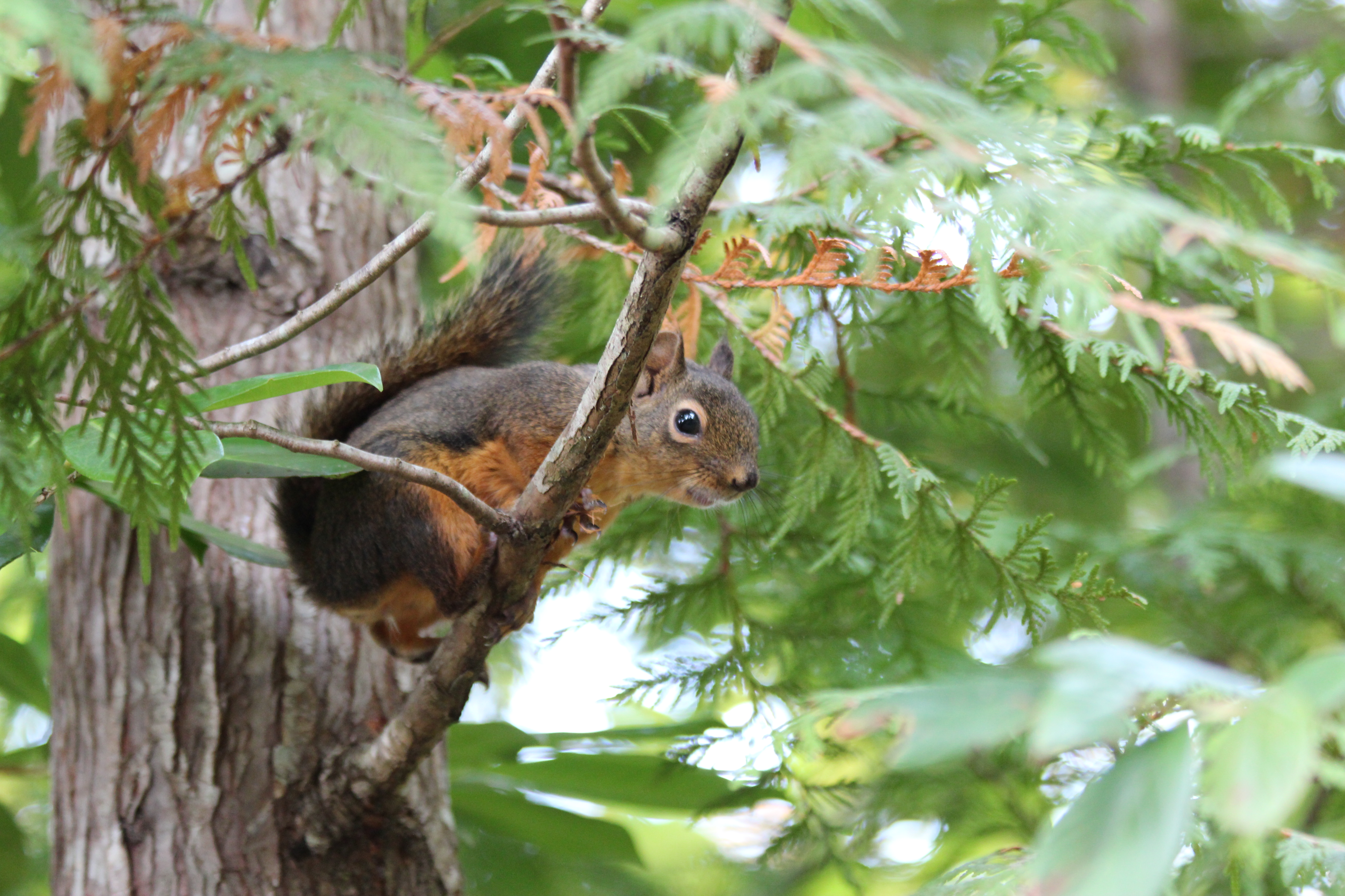 I was walking into the rental cabin at Lake Cushman when I heard an insistent barking in the trees above me. Apparently I had disturbed a chipmunk in his foraging. I got my camera and managed to get this picture. He finally got used to me, and continued looking around the area for food, and I managed to get some more shots of him, though he never really “warmed up” to me!