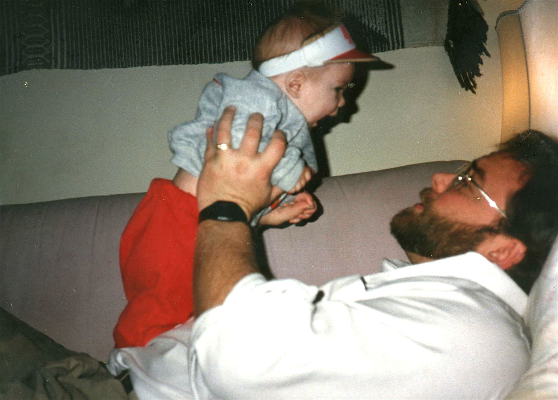 He came into the world after a long day of labor—on the part of his mother and himself. The cord was caught around his head; each time Karen had a contraction, the baby’s heart slowed. After twelve hours of labor, the heart marly stopped for about five minutes, dropping form a regular beat of about 150 to 30. The doctors started to do an emergency C-section there in the labor room, but the baby was strong, the heart returned to normal, and so their labor continued. At some point the stress caused the baby to defecate, and of course the waste got into the baby’s respiratory system. After twenty-four hours, at 9:37 pm, Friday September 8, 1989, the doctors finally took the baby by C-section.