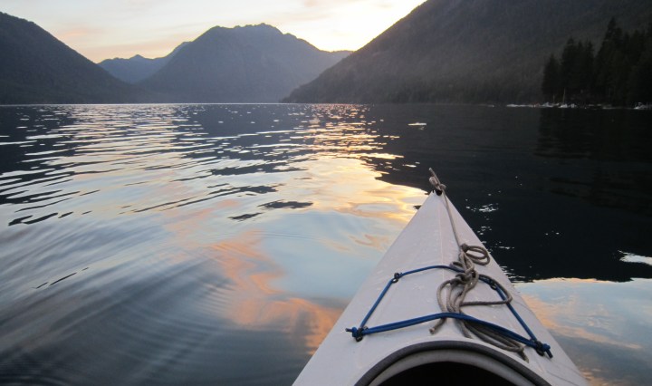 An August evening, a couple of years ago.  I was kayaking at sunset on Lake Cushman, and the waters of the lake reflected the sky’s changing colors.  For maybe half an hour I paddled into and through the sunset. Continue reading Evening Kayaking